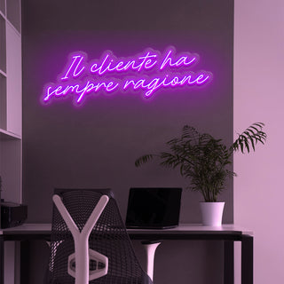 Scritta a Led Personalizzata Frasi Motivazionali "Il cliente ha sempre ragione" 147x42 cm