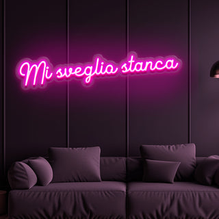 Scritta a Led Personalizzata Frasi Motivazionali "Mi sveglio stanca" 124x20 cm