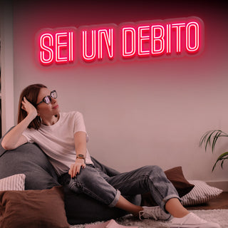 Scritta a Led Personalizzata Frasi Motivazionali "SEI UN DEBITO" 110x21 cm