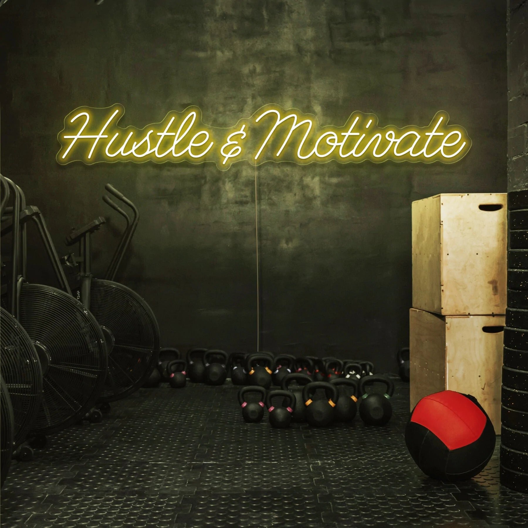 Scritta a Led Personalizzata Frasi Personalizzate “Hustle & Motivate” cm 100 x 30
